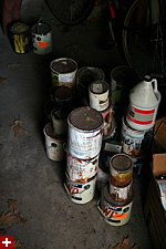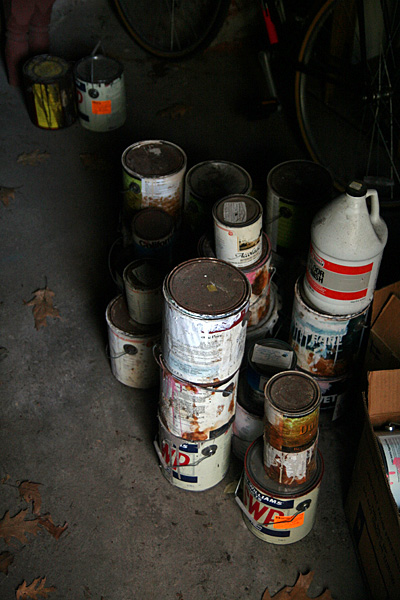 i woke up this morning at 8:30am to help my upstairs neighbor steve load our collection of used paint cans from the basement. even though he proposed the time, he didn't actually come downstairs until almost 9am. we loaded it into the back of his station wagon and drove down to the national guard armory near fresh pond where today was a special household hazardous waste collection day. the line was so long that the police officers directing traffic had us park down a side street temporarily. i got out of the car to buy a newspaper for steve thinking we'd have a long wait but it actually went by pretty quickly. figuring we'd have to unload the paints ourselves, instead there was a team of volunteers to do everything for us; all we had to do was just sit in the car.
