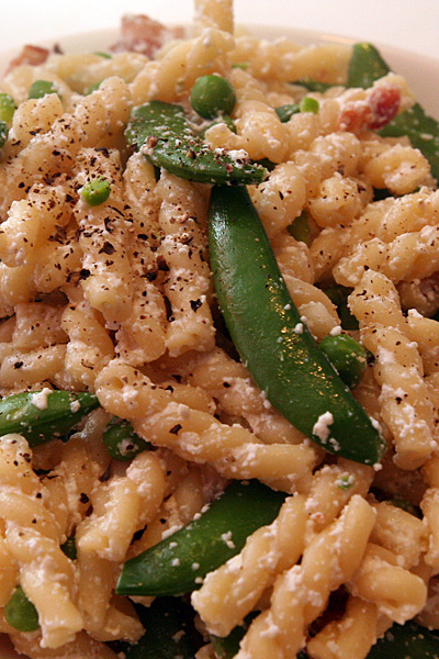 when i got back home i started making the vanilla panna cottas, which is just a glorified sweetened milk jello. later when julie arrived in the evening, i made the two-pea pasta recipe from everyday food. instead of tarragon, i added bacon, which turned out to be a good choice since the pasta itself was pretty bland. i cooked the bacon in the foreman grill, which basically stripped off most of the fat, but there was just enough to still leave them tasty. i picked the recipe because of the snap peas, my new favorite vegetable, although the ones i bought from the supermarket weren't very fresh. we ate in the living room heated only by my space heater (since i turned off my heat about 2 weeks ago, incorrectly assuming that the weather wouldn't get any colder). we compared cooking magazines, of which i have a small collection. we had the panna cottas for dessert which were overwhelmed by the flavor of maple syrup i drizzled on top of it. the red sox ended up winning their game in another 9th inning 1-0 walk-off victory against the bluejays. likewise the celtics easily defeated the hawks, sending the series to a game 6 in atlanta on friday night.