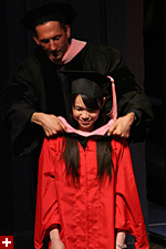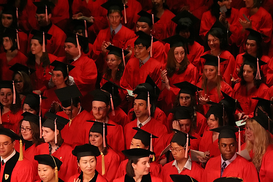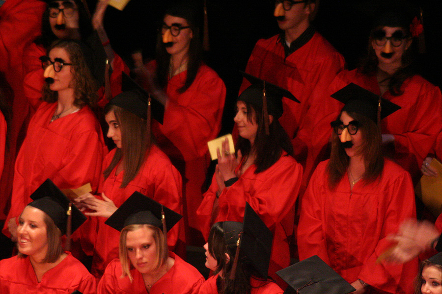 while alisa went backstage to be with the other graduates, i followed her guy friend into the theatre to find seats. since he graduated just last year, i figured he knew the layout of the place pretty well. we ended up sitting in the empty front row, even though there were signs everywhere saying they were reserved. he brought a camera as well, a canon 40D (the next level canon model above mine) along with a beefy L-lens. he was fiddling with the controls and asked me if there was a way to take photos without using the flash. i was more than happy to answer, but strange coming from the owner of a relatively high-performance camera. maybe he sensed i was questioning his camera IQ and told me he just got it. i told him to shoot in aperture priority mode, drop the f-stop, increase the ISO, and decrease the exposure compensation value.