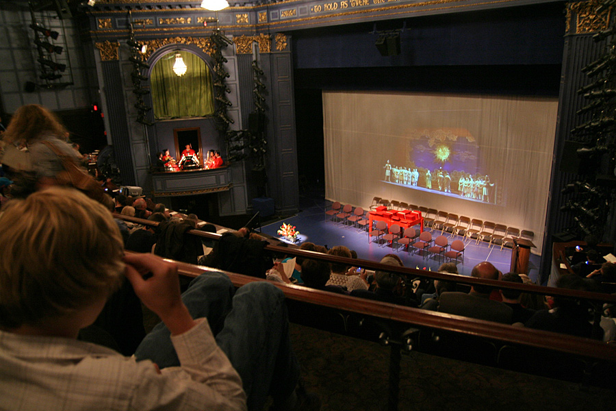 when alisa's friend left his seat briefly, he also left me to face the humiliation of eventually getting kicked out of the first row and then having to scurry around the theatre looking for a new place to sit. i knew those seats were too good to be true! when i bumped into him in the aisle i told him what happened. we finally had to go upstairs to the balcony section to find available seatings. he was a little upset because he didn't bring his telephoto lens. as for me, this ain't my first rodeo, and i had all my equipment ready. the only thing was the light was very dim and i had to shoot in grainy high ISO.
