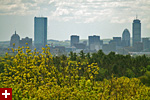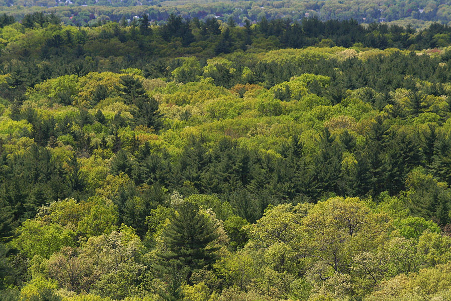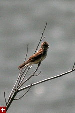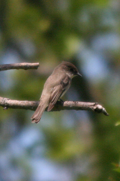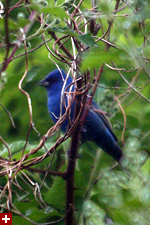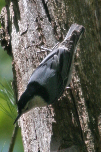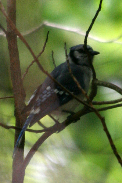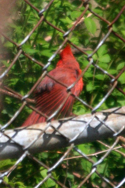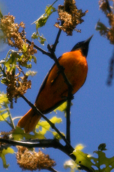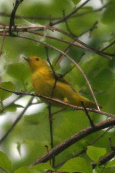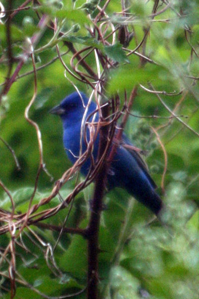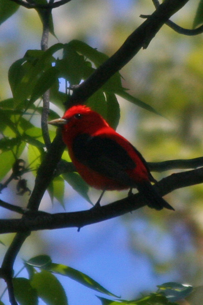 figuring that most of the trees already have their leaves, seeing birds wasn't a high priority. we could definitely hear them more than we could see them, hiding amongst the foliage. nevertheless, we still managed to see some relatively rare birds. our first was a baltimore oriole. there seems to be a lot of these this season (in years past, i'd go the entire spring-summer without ever seeing one), and we got a pretty look of a singing oriole high up in a tree when we first got to the fells. that could've easily been our birding highlight, but later after we started descending winthrop hill, we saw a scarlet tanager. i thought i saw one once at mt.auburn at the consecration dell, but i wasn't sure. this time i was positive, with photos to prove it. later, at the western tip of the north reservoir, we saw a bunch of birds, including a yellow warbler collecting nesting material and an indigo bunting (my first, although i might've seen a glimpse of it before at one of the mt.auburn cemetery morning birding outings). indigo buntings are kind of difficult to see, because under certain light conditions they just look like boring black birds. but once you get a good look, there's no mistaking this all blue bird. i thought i also saw a black-throated blue warbler but it was only a glimpse and i never saw it again after that one time.