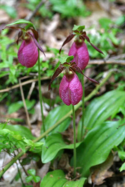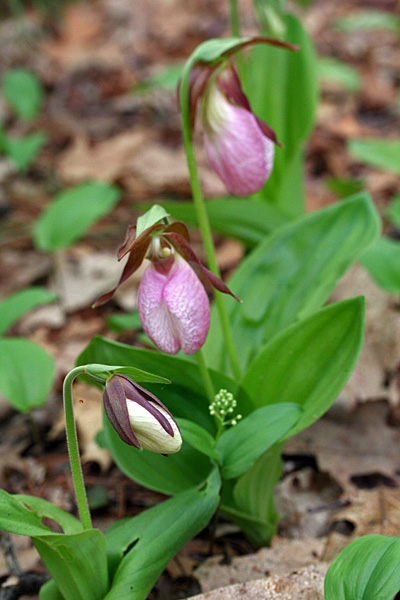 the main reason why we were at middlesex fells is to check out the field of blossoming ladyslipper flowers. as soon as we left the rocky hills and into the soft undergrowth of the pine forest, we began to see the familiar mansacks. we noticed the differentiation in colors, ranging from pure white to light pink to dark pink. even with so many ladyslippers already blooming, there were even more waiting to flower. come back in another few weeks and the place will be covered with these orchids.