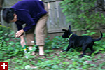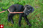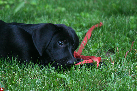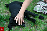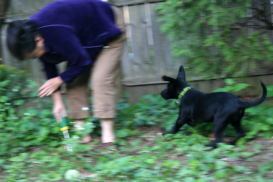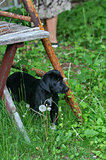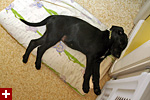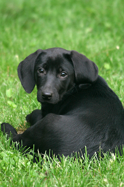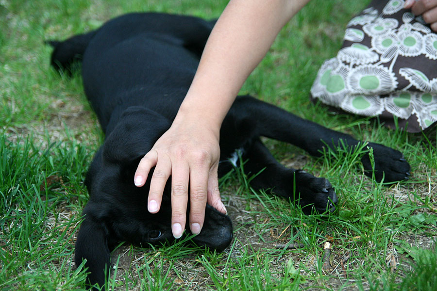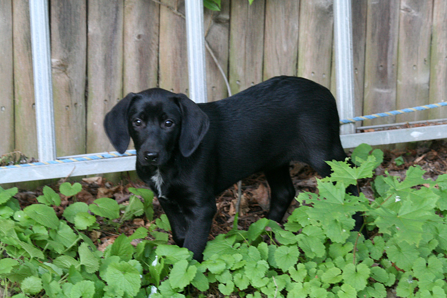 so fast-forward 48 hours later after the loss of the old dog and in comes a new dog. it wasn't even the dog that my sister e-mailed me a photo of yesterday, a message i promptly ignored. the dog in that photo was a keeshond mix, and as much as i'm against my family getting a dog, i had less objection with a keeshond, partly because that was our last family dog. the dog my parents and sister ended up choosing was an 8-week-old female black labrador and hound dog mix. not sure what kind of hound dog, but if it's a bloodhound, then this mix would be a labloodhound. she pretty much looks like a black labrador puppy, with a white chest (which happens in purebred black labs as well, but it's not a desired trait). they picked her because she seemed the most obedient, smart enough to bark to get her owner's attention when she needs to use the bathroom, otherwise a quiet dog. she's a sound sleeper, and even with people around playing with her, she can still sleep (at one point i thought she was dead). she also had really soft feet because she's just a puppy, the padding on her paws not yet worn rough.