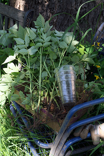 in the late afternoon i went with my father to the super market before going to home depot. i wanted to return this wood stripper solution i bought yesterday, but the return line was a dozen customers deep, so i abandoned that idea. instead we bought some more vegetable plants, with me getting a small rosemary to replace the one that died during the winter. i returned to belmont to help plant those raspberry plants and to have dinner there.