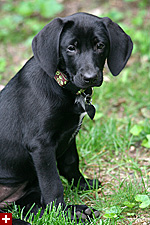 when i first came into the house to pet hailey, i think in the excitement she accidently wet herself a little bit on the living room floor. if you ignore the long legs and the distinctive labrador head, hailey has the body of a piglet because the shiny black hairs on her torso are very course. at times she seems easily distracted, running up to investigate whatever catches her attention, but at other times she can just as easily tune out the world, ignoring people calling her. maybe she doesn't know her name yet. after letting her out to use the bathroom, she's allowed to roam the house under supervision. she likes to jump up and lick your face but usually falls down backwards on her back in the process. she's already discovered that there might be things to eat in the trash can and i saw her standing up trying to claw at the lid. she also ate a rock while she was out in the backyard.