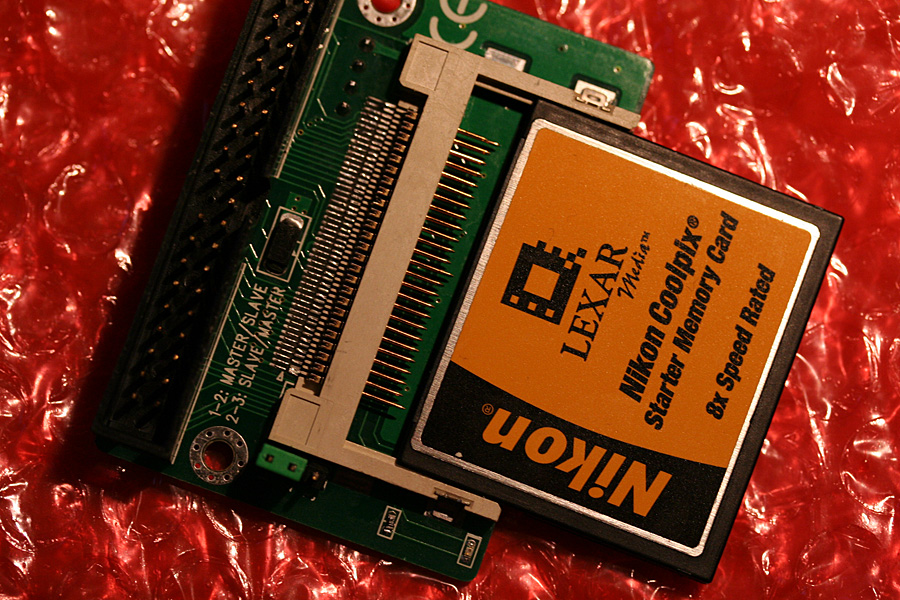 my iDE to CF adapter arrived today, fresh from a chinese factory, the export custom stamp on the envelope not yet dry. i copied the m0n0wall image onto an old 16MB compact flash card i had lying around and managed to boot up the PC without any problems. using a normal hard disk running windows XP, the PC used 80 watts of power minimum at idle. with the more energy-efficient compact flash card, it uses 70 watts. still a lot of power though, so now i'm in the market for a low power PC to become my captive portal server, 20 watts or less.