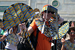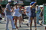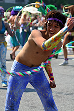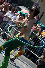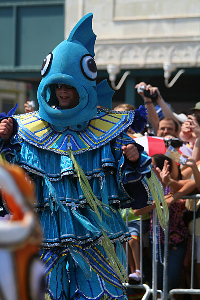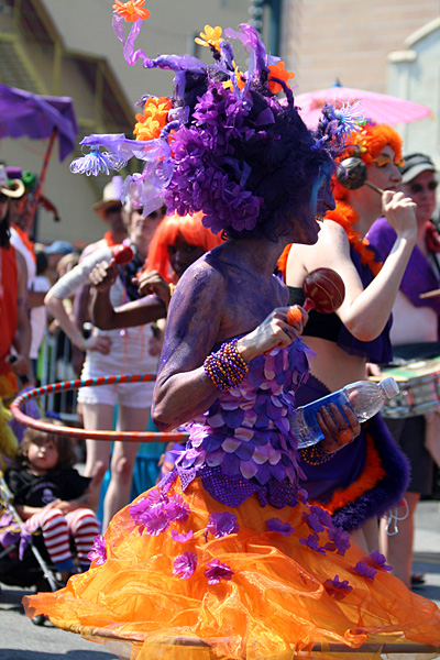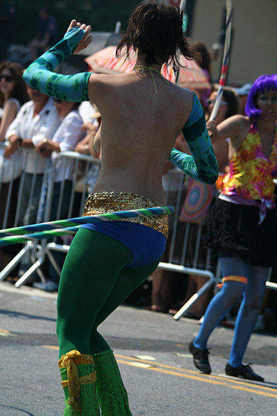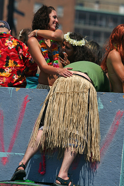 i saw the rude mechanical orchestra (RMO), one of the only groups i recognized (with their distinctive green marching outfits). i first saw them last year at the camberville honkfest and just fell in love with marching band/dance troupe. i couldn't be sure, but i think the hula dancers (one of my favorites) were also a part of the group. i hope they come up to camberville again in the fall.