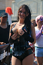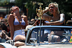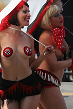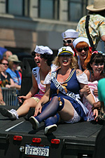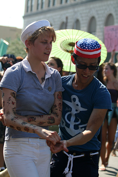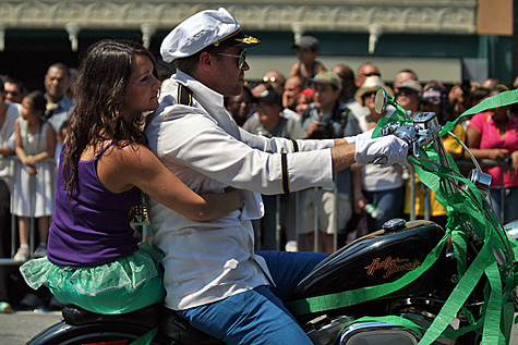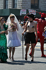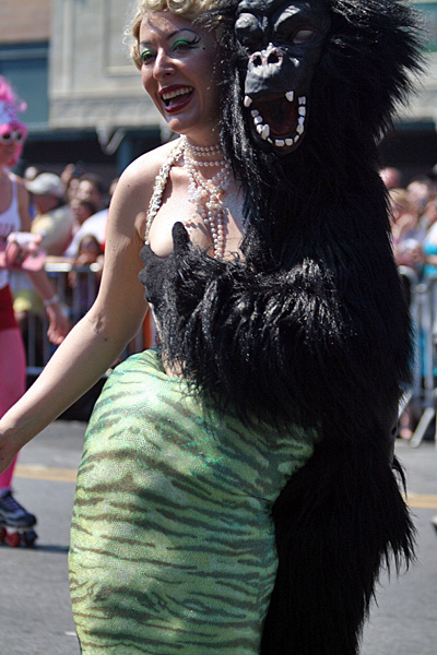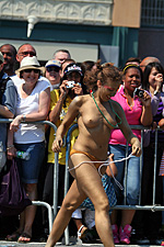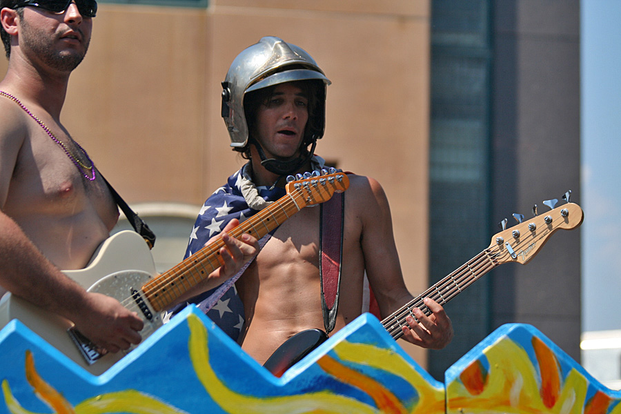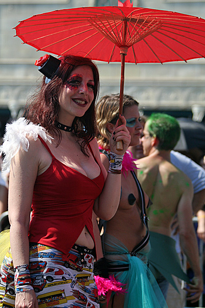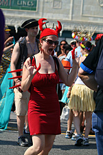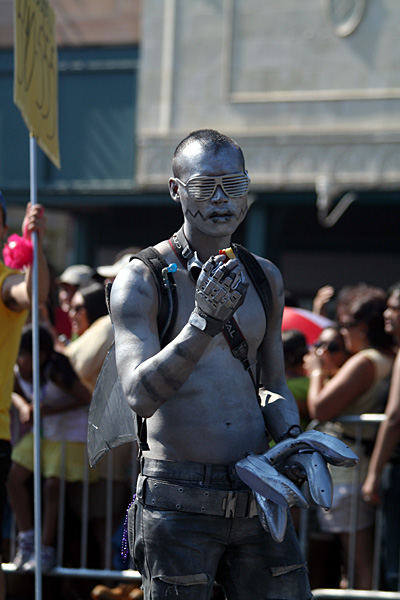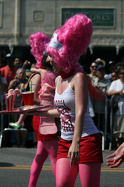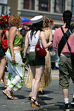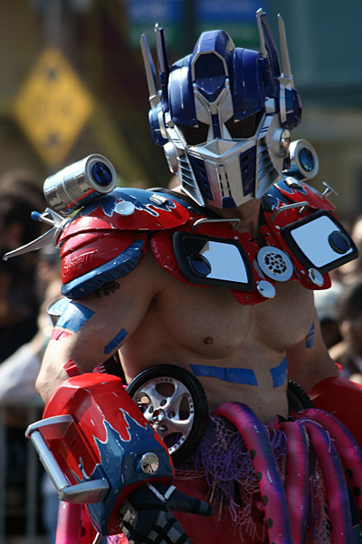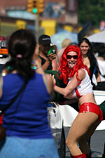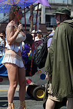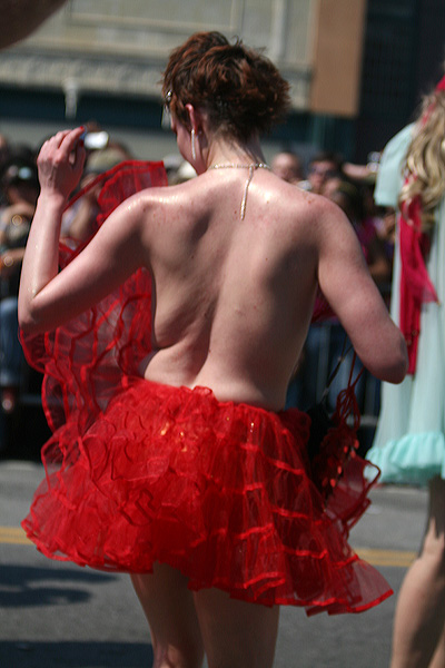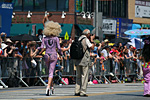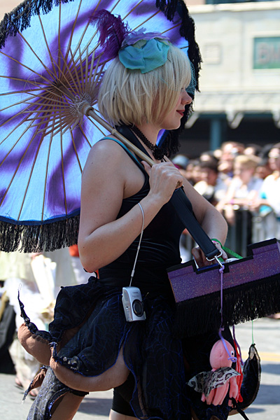 once the parade kicked off around 2pm, i spent the next 2 hours shooting non-stop. a guy behind me with a camcorder tried to squeeze to the front, first by making small talk, then casually suggesting if we could scooch over to make room for him. nobody budged. i didn't just stand here for 2 hours to give up some space for a total stranger too ill-prepared to arrive early! he soon left when we were unresponsive to his demands. another guy standing next to me must've been an insult comic, making snide remarks like "mid-life crisis!" to the hot rod drivers or "shave your legs!" to the cross-dresser.