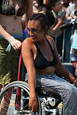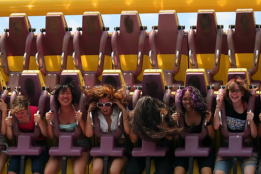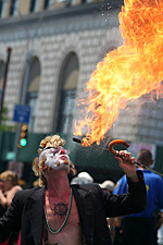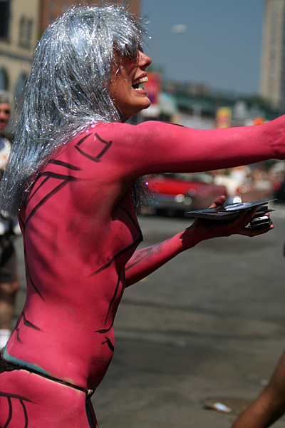 30 minutes later i was in coney island. ahead of schedule, i had about 2 hours to kill before the parade started. i took a circuit tour down the boardwalk. the weather was hot - probably in the 80's - a nice day to hit the water if i wasn't in my leg cast. i walked through the amusement park area and watched as a group of kids were getting their kicks from a vomit-inducing ride.