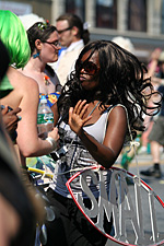 the parade finally drew to a close around 4pm, as the police unlocked the barricades to allow people to cross the street again into the coney island train station. i could already fell my tanned skin tightening from standing out in the sun for 4 hours without any protection. exhausted from standing for so long, pushed forward into the crowd and made my way to the N train going uptown. normally i might give up my seat but with my leg in a cast i had no compunction about sitting down.