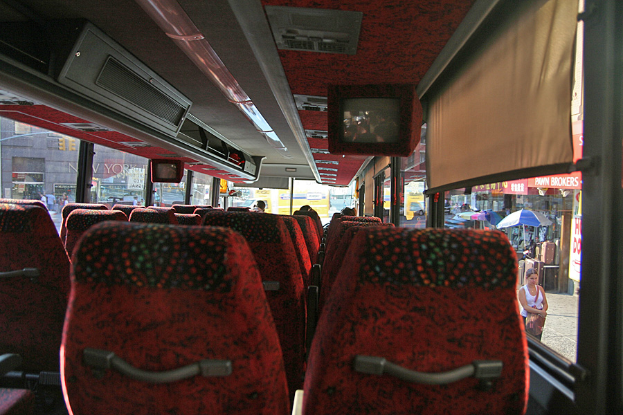 with just a few hours of sleep the night before, it didn't take me long for me to fall asleep on the bus. the only down side was because i was afraid to leave my camera bag in the overhead storage shelf, i ended up having it on my lap the whole time, crushing my private parts. i slept pretty well despite the fact that i was on the bus. the thing that kept waking me up was the periodic sudden stops or the occasional highway swerve. our driver - wearing a white fung wah lab coat - seemed to be on a personal mission to get us all to NYC in the shortest time possible. we even pulled up to a rest stop, only to speed away for some unknown reason. maybe because he saw another fung wah bus there and wanted the bragging rights to say he beat the bus that left ahead of him. the final stretch leading into manhattan was a drag race between the two fung wah buses as the one that used to be behind us managed to get ahead of us. i couldn't sleep at that point as ride became a death race to see who'd be the first to arrive in chinatown.