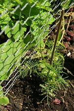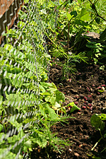 it was finally time to transplant some seedlings into the ground. i picked three of the healthiest cypress vines and planted them next to the chicken wire trellis i set up a few days ago. they'll be competing with some wild morning glory vines that have already been growing along the edge of the wooden fence. hopefully the two different flowers can coexist. if i add some moonflowers, i will have a distinctively patriotic natural patchwork of red, white, and blue flowers. unfortunately all three flowers bloom at different times of the day.