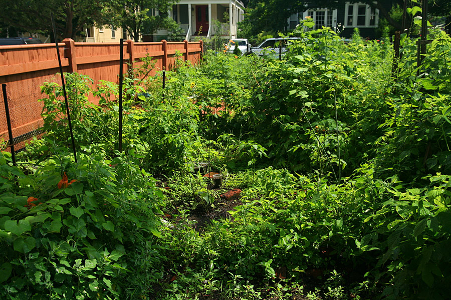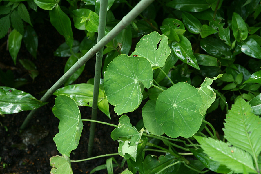 only one of the cypress vines had started to coil on the chicken wire trellis; something which the wild morning glories had no problems with. the few nasturtium seedlings seem to be doing well, while the one i had from february that i transplanted outdoors isn't doing so bad either. i also sprinkled some cilantro seeds, hopefully a few will sprout out in time for august. maybe tomorrow i can collect some golden raspberries.