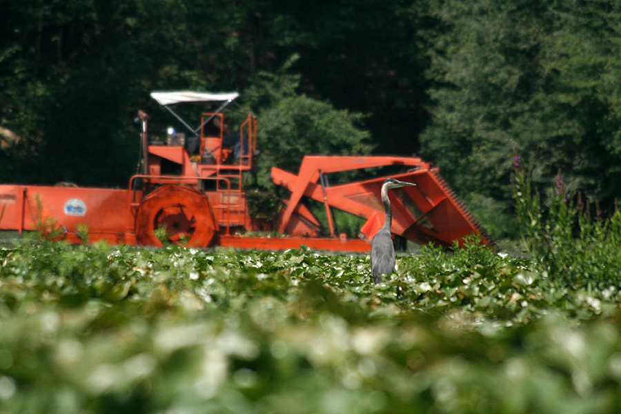 animals tend to congregate in places where people don't usually go, and such was the case with the river. there were plenty of birds to be seen. a more patient birdwatcher armed with a pair of binoculars would've seen more, but just from our simple gazing we spotted families of wood ducks hiding in the thickets, red-winged blackbirds, swans, phoebes (hovering above the water looking for bugs to eat), cedar waxwings, cormorants, one female oriole, goldfinches, and at least a half dozen great blue herons. i think i saw a night heron and bruce swore he spotted the head of a large snapping turtle swimming by our kayaks.
