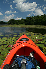 the first things i noticed right away was all the lilypads growing on the surface of the water. if you look carefully, you see a lot of leaves are actually damaged from all the water traffic that passes through the river. many of the lilypads had pretty white flowers, and occasionally i'd spot a rare yellow flower. the second thing that there was an abundance of were the dragonflies and the damselflies. they were everywhere, bluets, spreadwings, dashers, skimmers, amberwings, pennants, and every once in a while an elusive giant green darner. despite all this insect activity, i didn't get too many photos of them. partly because i've seen most of them before, and partly because moving on a kayak, it was hard to focus on something so small. even when i was "parked" the river current would still slowly drift me away. but if i had more time, i would definitely try to get some dragonfly photos.