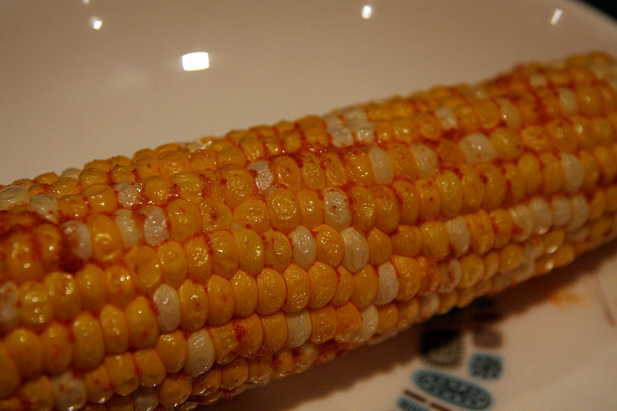 one of those rare times when the whole was greater than the sum of the parts. i also made some chili lime corn-on-the-cob. the recipe called for outdoor BBQ'ing but i just cooked it in the oven, drizzled with a "sauce" composed of butter, chili powder, and lime juice. it came out well, but i still prefer my barbecue corn over chili lime corn any day. for dessert i made some grass jelly drink but julie would have none of it, her culinary curiosity extending only so far.