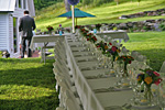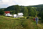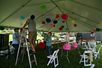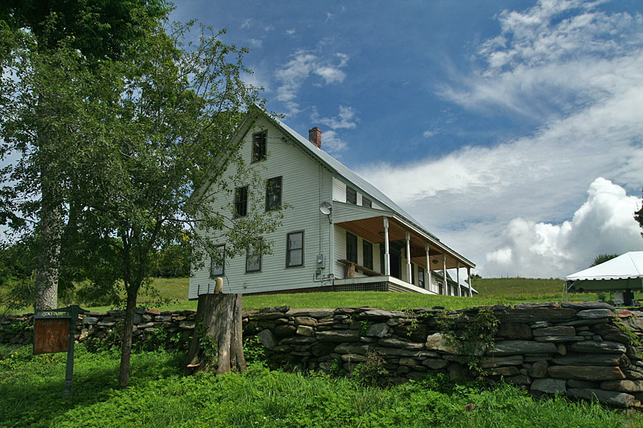 traversing a narrow dirt road, i arrived at my destination pretty much right around noontime. underneath a large tent i saw everyone (elias, amanda, and some friends) pitching in putting up homemade colored "poof" balls. the weather at that point was beautiful and the place was a picture perfect postcard-image of quiet pastoral tranquility. i was shown my lodging for the weekend stay, a private bedroom on the top floor of the farm house.