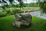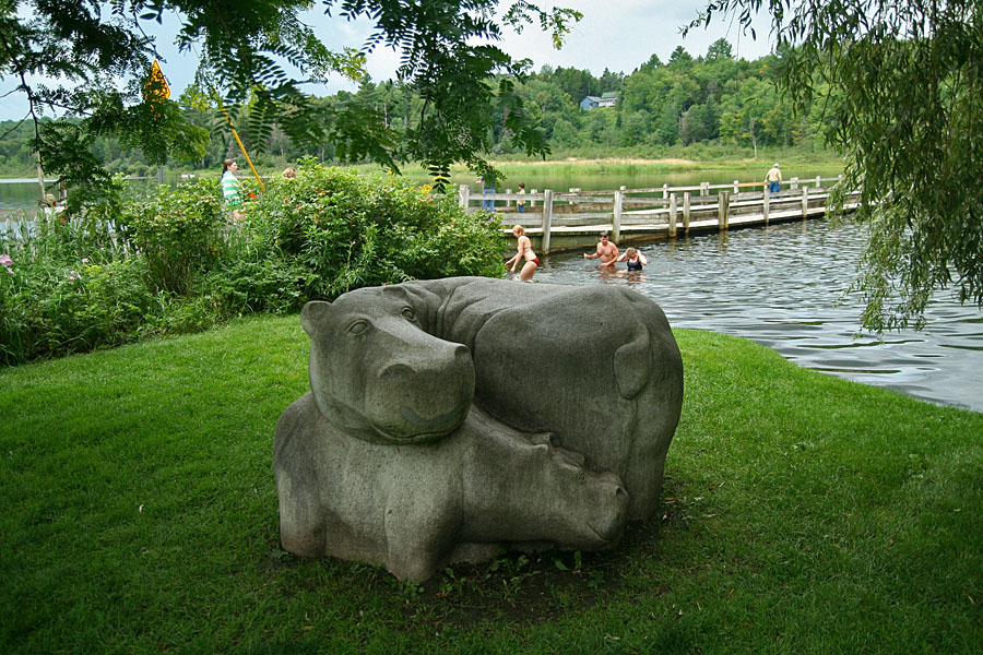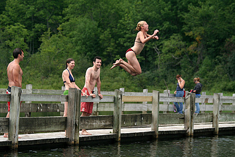 the gang marched to the center of the bridge (where the water was deepest) and proceeded to jump into the lake. curious neighbors and fishermen looked on, attracted by the spectacle of noisy young people in their bathing suits diving into the water. the water was clean but did have a lake smell to it and surprisingly cold as well. it wasn't long before the sky clouded over and some raindrops began to fall. that was our cue to go back to maple cake.