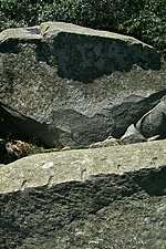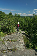 it didn't take us long to get to the summit of tippling rock. although not the highest point in sudbury (that recognition goes to nearby nobscot hill), we still managed to see the tops of the prudential and hancock towers in boston. we had lunch up there (i bought a buffalo chicken sandwich from the somerville subway before we left this morning). an old hiker surprised us while we were lounging, but that was the only other person we saw there.