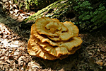 after leaving tippling rock we decided to take a looping trail. one weakness of the preserve is the abundance of little side trails courtesy of the local boy scout troop. even with a map, it was still easy to get lost, which was what happened. although i had my gps, it's an older model that has a hard time getting a signal through the trees. fortunately bruce brought along his compass so we had a general idea in which direction we should be walking. we came across empty (locked) boy scout lodges, a burnt down house (all that was left was the chimney), and a large wooden octagon structure that looked like some posh private residence. eventually we found our way out of the forest and back to the car.