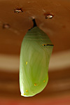 back in town i asked bruce if i could see the monarch butterfly caterpillar he'd been rearing, now a fully-formed chrysalis, awaiting its transformation into a butterfly. bruce hoped the chrysalis would hatch before he leaves for pittsburgh this weekend. after i went home, i got on the motorcycle and visited my garden. all the plants are a bit bigger since my last visit. the row of possible cosmos/ragweeds are definitely cosmos from the large forming flower buds. some of my tomatoes were changing color but none of them are ripe yet.