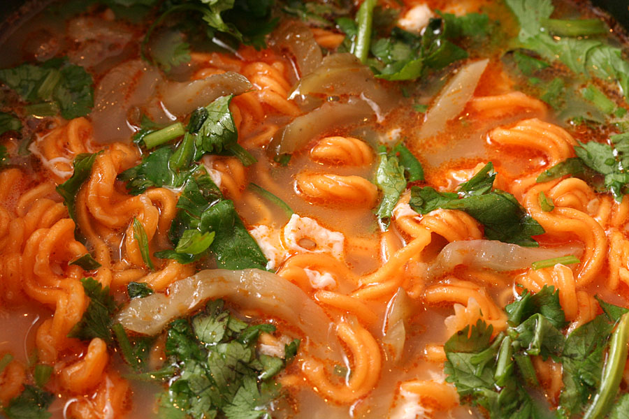 for lunch, i made an omelette: 2 eggs folded with some cheddar cheese and salsa. washed it all down with a smoothie (banana, frozen strawberries, passion fruit juice) followed by some watermelon slices. for dinner, your basic ramen. for whatever reason, i tend to eat the most ramen on friday nights. washed it all down with some diet root beer (accidental purchase), followed by more watermelon slices.