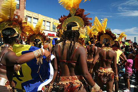 i was expecting there to be more organization for this cambridge carnival parade, but it was just as messy, and not as good as the parade yesterday (despite the chaos). just that in the mad crush of spectators and participants, it was hard to get off any good shots. the procession can either grind to a halt or rush by in seconds. it probably would've helped if i used a more suitable lens other than the long-range telephoto. towards the end i finally switched to my 17-50mm and managed to get a few good ones, but my then the parade was nearly over, just the heart-pounding bass of the stereo truck leaving me fishing in my bag looking for my earplugs. when the carnival parades come again next year i'll still go, but they'll never be as fun as my first and second time. i almost wanted to apologize to alex for such a lackluster and crazy time, but hopefully he got a few good snapshots.