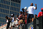 the parade didn't actually start until 1:30, and didn't reach us until almost 2pm, as we watched the procession slowly inching its way up river street into central square. the angle of the sun was terrible for pictures, with the sunlight shining directly behind the people's heads, leaving their faces in shadows. i suggested to alex we move up to mass ave, where the light was better. i've never been much of a light snob, but i guess i finally crossed that line. alex bumped into his friend tommy (through pre-arrangement or not, i'm not sure), who ended up hanging out with us, even though he didn't have a camera. later i learned tommy also went to belmont HS like alex and me. interested as to what year he graduated, i told him i graduated in 1992. "i wasn't even in the US back then," he said.