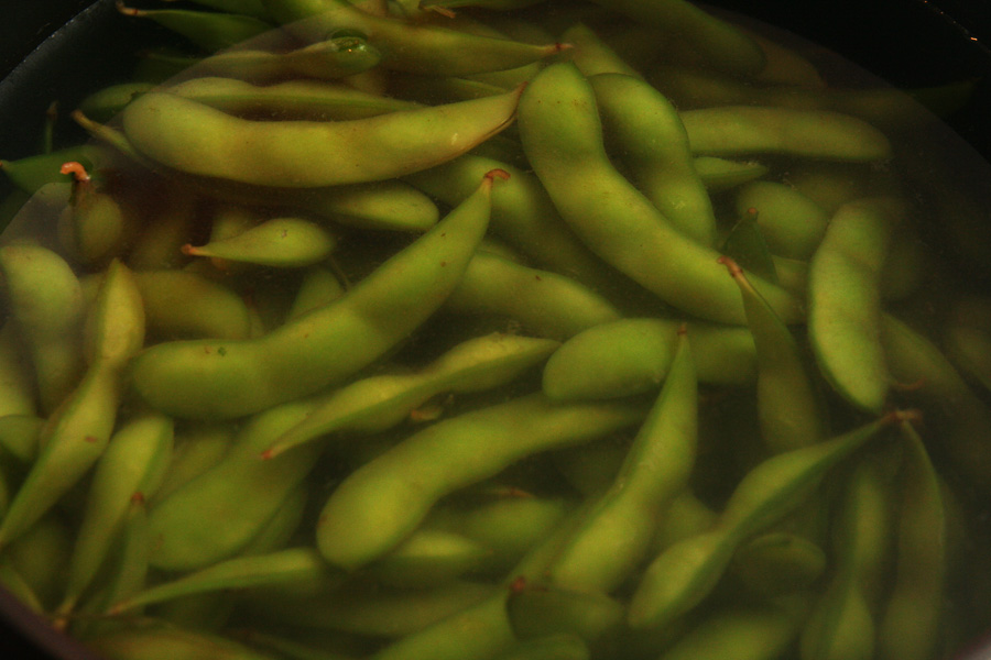 for dinner, some edamame beans. later in the evening i went outside and moved the motorcycle. it was parked perpendicular to the curb, so all the rainwashed debris was collecting behind the wheels. i moved it so faced parallel.