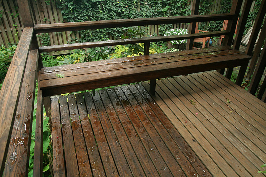 the rain gave me the perfect opportunity to check out my waterproofing handiwork on the backyard deck. there's something very comforting to see water beading on the wooden surface. it gave me even more incentive to finish the rest of the deck.