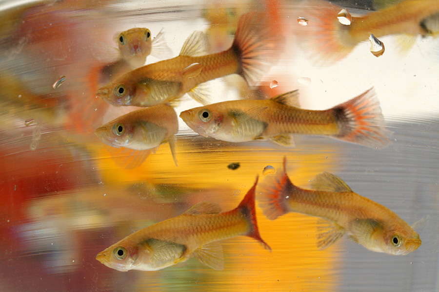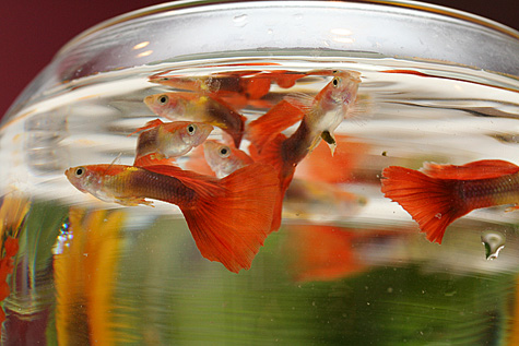with both tanks drained so nothing left but gravel and about 2 gallons worth of water, they were finally light enough to move. set up in their new location, i started refilling the tanks with water, making sure to add a few milligrams of a neutralizing solution to get rid of the chlorine and chloramine from the tapwater. fortunately the weather's still warm so the water wasn't very cold (compared to winter water temperature), so i was able to add the fish right away, first with the female guppies, followed by the males. i decided to keep them all in one tank. i originally separated them because i didn't want an unwanted pregnancies, since i couldn't bear the thought of guppy fries being eaten by their parents. since then i've become more nonchalant when it comes to underwater infanticide. having only one tank makes maintenance a lot easier too, but i'm still running the second tank for now, just empty.
