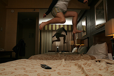 i am in newark new jersey jumping on beds. this, after working all day at the newark museum, looking at old firefighting relics and simulating a virtual inferno with ceiling-mounted club lights. all this with just 2 hours of sleep last night. within the past 48 hours i've slept a total of 4 hours. how i'm still standing is a modern day miracle.