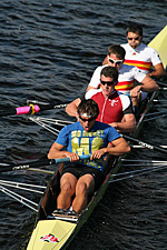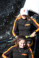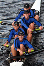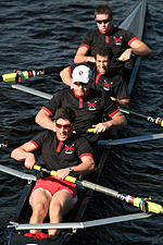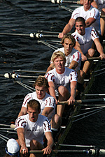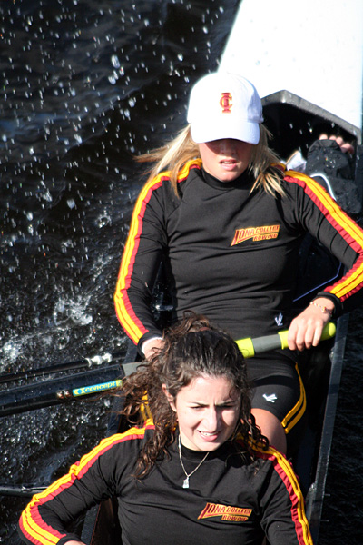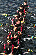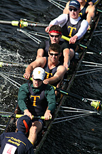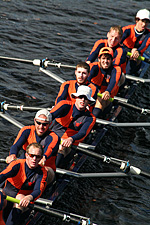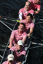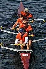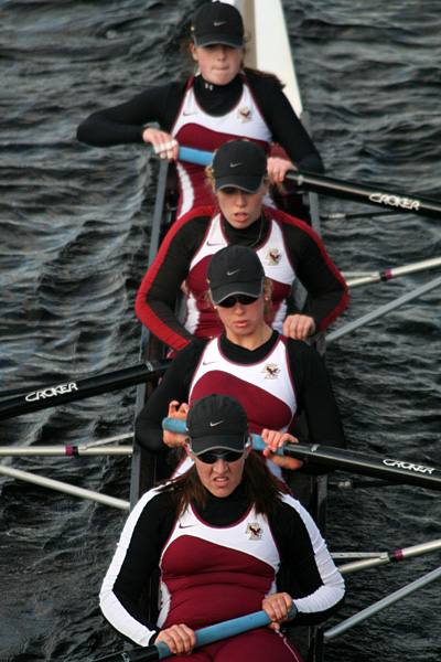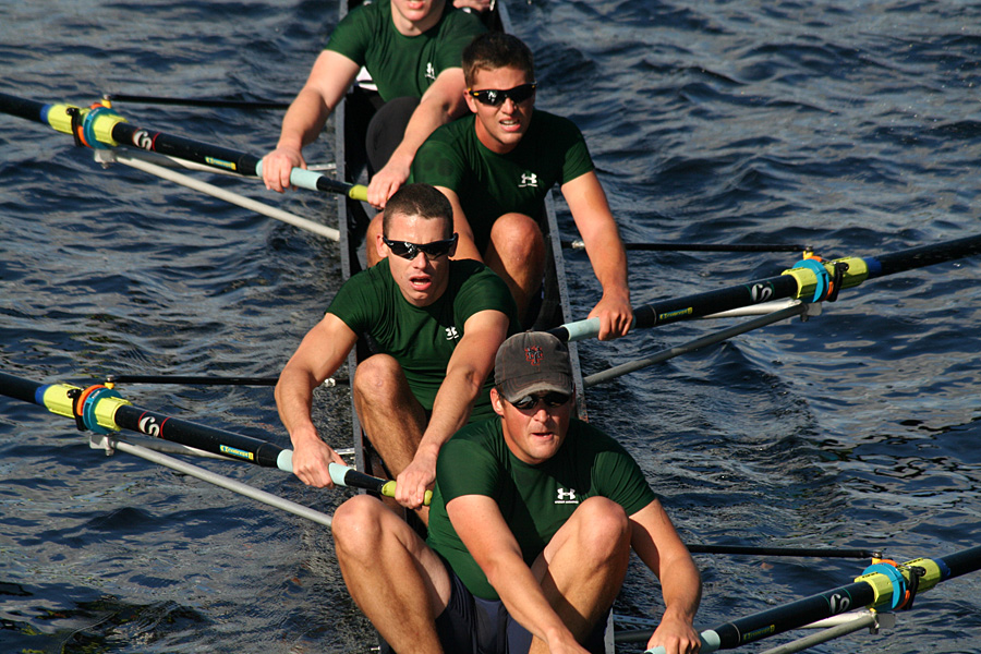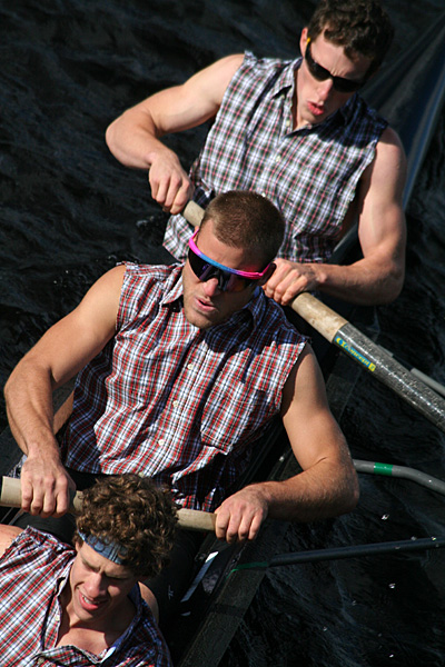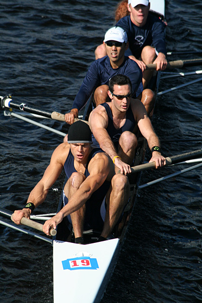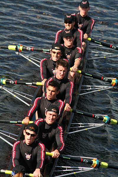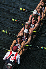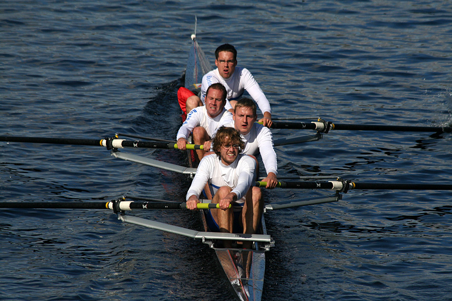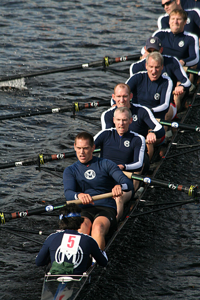 i went to go see the head of the charles this morning. i was supposed to go with my roommate but he was out with friends last night and hadn't been back since. rode the motorcycle and parked it as close to harvard square as possible without getting snarled in the festivity roadblocks. they didn't have any free schedule/roster like in year's past, and the cheapest program guide was $5. i was lucky to find a spot in the middle of the anderson bridge and proceeded to wait and watch for the next hour and a half. i saw the club four for both men and women and the club eight for men. i played around with the camera settings, changing the autofocus mode, the ISO, and the aperture. call me a sadist, but i love any photos where the rowers are straining and they have this pained look on their faces.