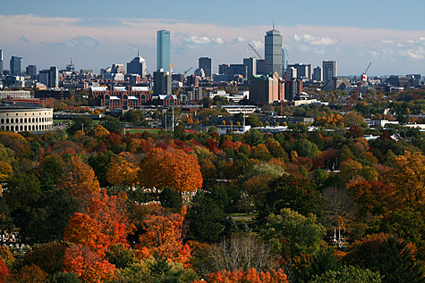 i took my roommate to the mount auburn cemetery today. since i'd be going to my parents right afterwards and he had some errands to run later, he left first via bicycle while i followed along minutes later on my motorcycle. i figured it'd be interesting for him to see what an american cemetery looks like. he'd also been starting a fall foliage collection and the mt.auburn cemetery is the premiere place to go to find trees of color. we went up on the tower and he got an awesome view of cambridge-boston and the surrounding area. "what a great landscape," he said a few times, thoroughly impressed. along the way he'd pick up leaves and tuck them inside a magazine he was carrying. we even managed to see a chipmunk scurrying through some bushes, an animal he'd never seen before, and managed to videotape for posterity with his little camcorder.