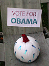 i've never even heard of before. constitution party? with slight panic setting in, i spotted a name i did recognize: mccain/palin. hey, i know them! that's who i'll vote for! it took me a second to catch myself before i filled in the wrong oval. no! i didn't endure 2 years' worth of campaigning to choose the wrong candidate. with one disaster avoided, i was moments away from a potential second disaster. the scanning optical machine decided not to cooperate and wouldn't accept any ballots until somebody took a quick look at it and managed to get it working again. my roommate was still outside by the time i left (the whole voting process took just a few minutes, and mostly because i was fumbling with my camera inside the booth trying to get a good photo of my ballot). he asked if i could take a photo of him standing next to a man outside holding an obama sign.