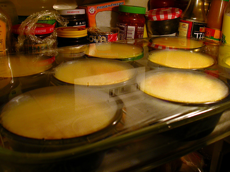 when my roommate came home later in the evening, he didn't ask me about the trays of flan sitting in the fridge. as of matter of fact, he seems surprisingly uncurious about many things that happen around the house.