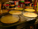 i poured the leftover into a cup and gulped it down. sure enough, it tasted just like thick delicious egg nog. flan is just basically baked egg nog! why i never tried to drink this before was i always thought it was kind of dangerous eating raw eggs (which is one of the ingredients) with the possibility of getting salmonella. but after checking out the price of egg nog at the supermarket ($4.50 for a carton), i figured i'd save more money just making my own. plus i found a way to pasteurize the milk without completely cooking it, so i can enjoy this special holiday drink with relative safety. but a cup of egg nog? 500 calories. not for the squeamish.