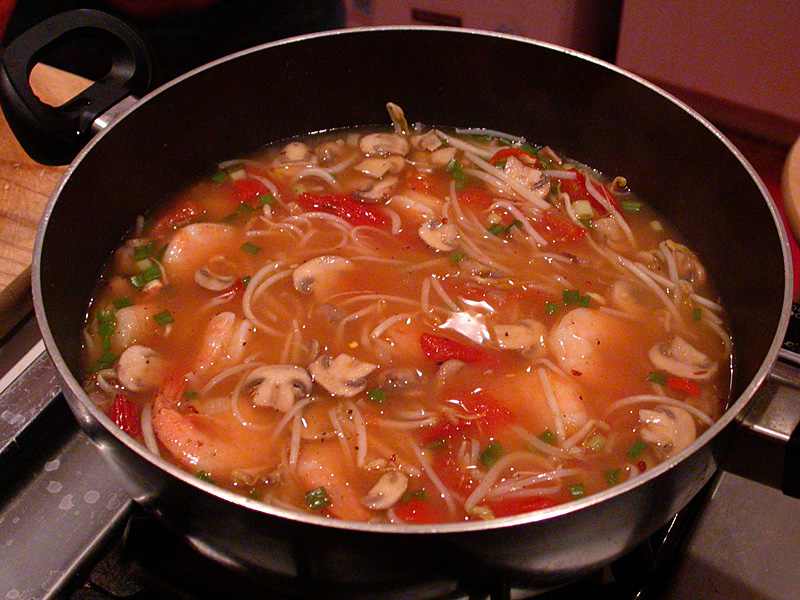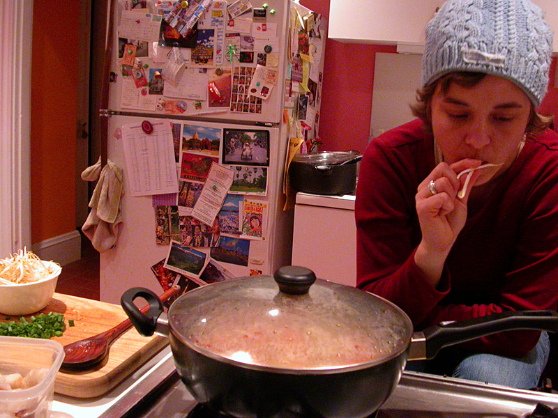 i returned to cambridge when my sister came back home in the early evening. i had just enough time to tidy up the house a bit before julie arrived to make some hot and sour vietnamese noodle soup for dinner. she also bought along some homemade pumpkin bread.