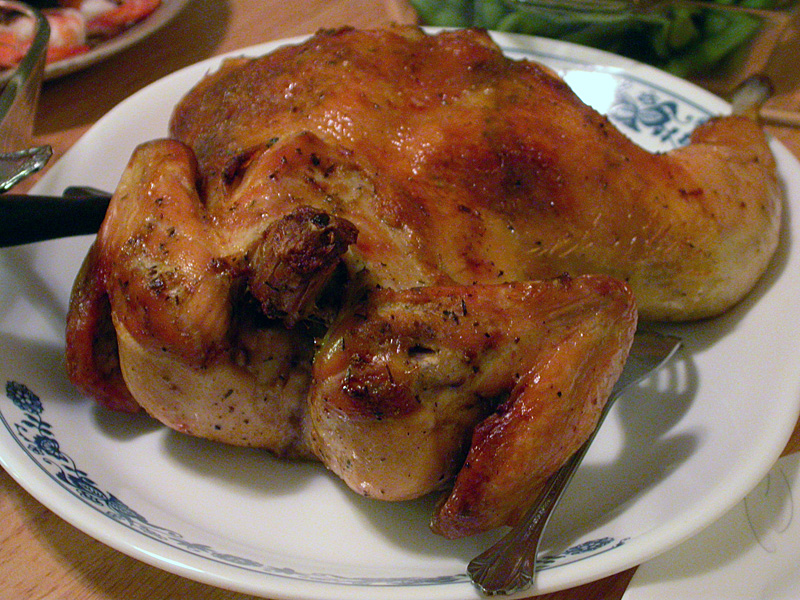 besides my aunt and great uncle, my godmother's son alex was there too, and my sister arrived moments later (after coming back from her party and feeding the dog first). i felt a little cheated because we had chicken instead of turkey (thanksgiving isn't thanksgiving without turkey) but i was just thankful i was having a special dinner at all, because my original plan was just having some ramen by myself at home. after quickly eating, alex left to go to another thanksgiving party. my sister left soon afterwards as well, her excuse being she had to go home and make sure hailey didn't do anything bad. my great uncle went to the living room to watch tv after he finished with his meal, and my godmother showed my aunt and me photos of the beijing olympics sent to her from a friend who went to the event. for dessert we had the flan i made 2 days ago. i don't want to brag, but one of my most successful flan attempts: most of the caramelized sugar melted accordingly, and there were virtual no air bubbles trapped in the flan. the texture was perfect too, very light. the only thing i'd change is maybe reduce the amount of sugar i use.