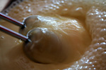 a dash of cinnamon. the tricky part is pasteurizing the eggs first. to the 10 eggs i added about a cup's worth of milk and slowly cooked it over low heat, carefully monitoring the temperature with a digital cooking thermometer. i had to bring everything to 160°F to make the eggs safe, but before i could reach that temperature, the eggs started to curdle (at about 140°F) so i took it off the stove. it's hard to pasteurize eggs (although this was my first attempt). in the future, if i ever wanted to do homemade egg nog again, it might be easier to buy pasteurized eggs from a carton. once that was done, i mixed everything together and poured it into a plastic pitcher, to be chilled inside the fridge. i sampled a small amount, tastes just like egg nog, a touch watery, but good enough.
