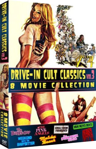 i received my copy of drive-in cult classics volume 3 the other day. i ordered it from deepdiscount.com during their black friday sale for $5. it features 8 low budget exploitation movies from the late 60's and 70's, spanning 4 double-sided dvd's packed in a thick slipcase. having watched 2 of the movies, i went online and ordered volume 1. these are the movies i like to watch, featuring subversive plots, strange and outdated dialogue, bad production value, random violence, and frequent boobage.