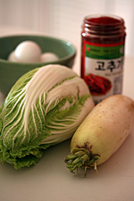 after getting some cash from the ATM, i went to the union square korean supermarket and bought a small daikon radish and a container of korean crushed red pepper. i think one of the store owners recognized me from my last visit a few weeks ago, buying up bottles of korean soju and a head of napa lettuce. coming back, i stopped off at market basket to pick up some fresh ginger, some sugar, and a string of bananas.
