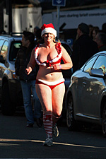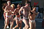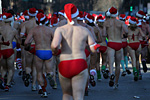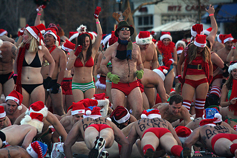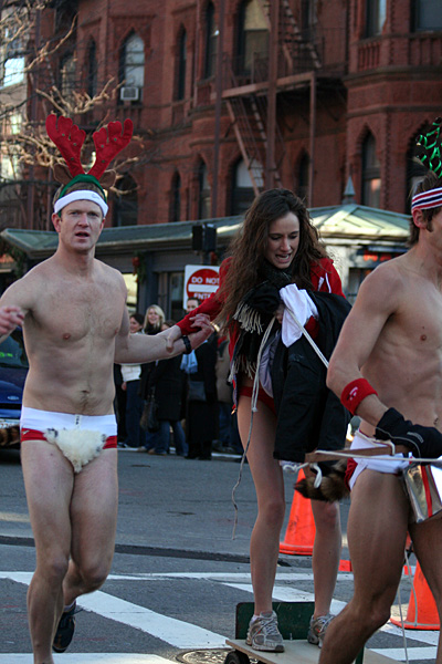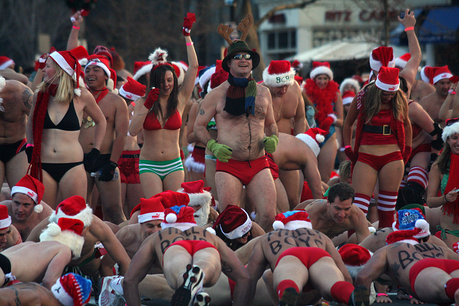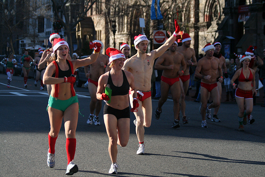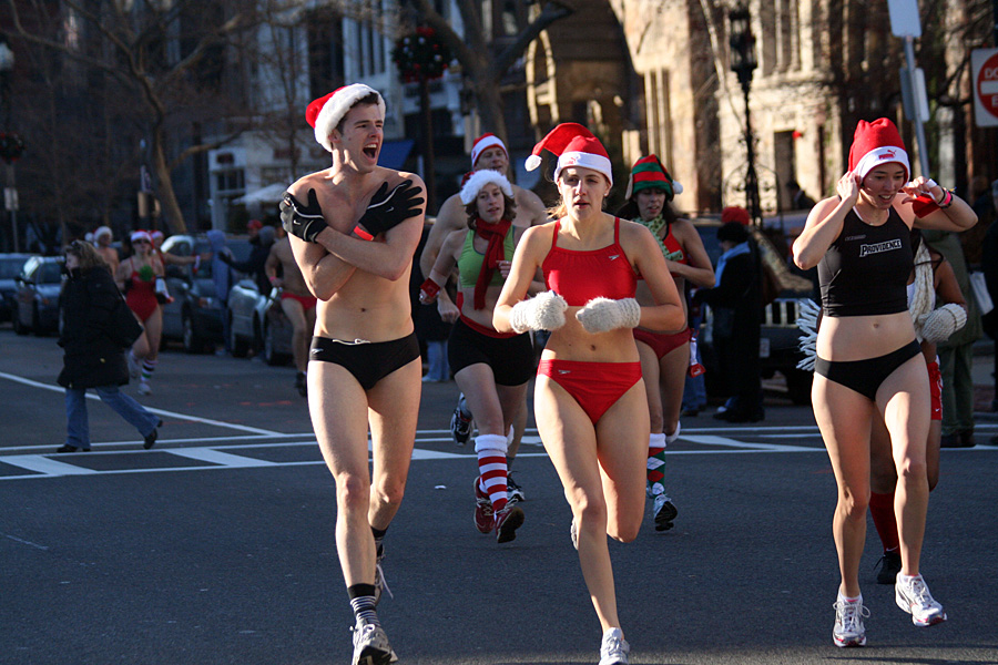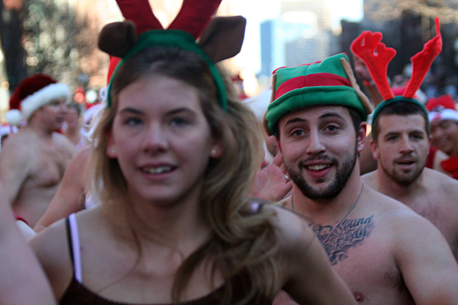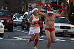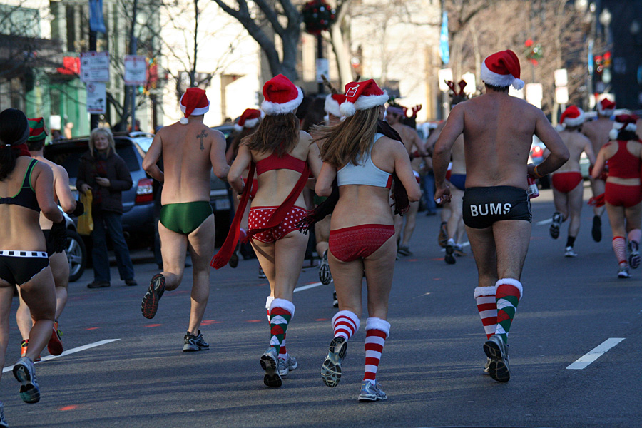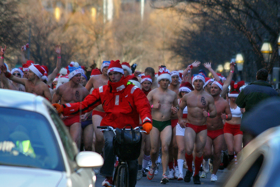 i ended up answering questions from two different tourists as to what was going on. the santa speedo run hasn't been going on long enough that it's developed into a local tradition yet. it's definitely not in any boston tour guides, so it's still a hidden event. what city wouldn't want runners dressed in their santa underwear running around their streets though? not sure if it drums up any sales for the nearby businesses, but it's definitely something fun to see, the last fling of the year.