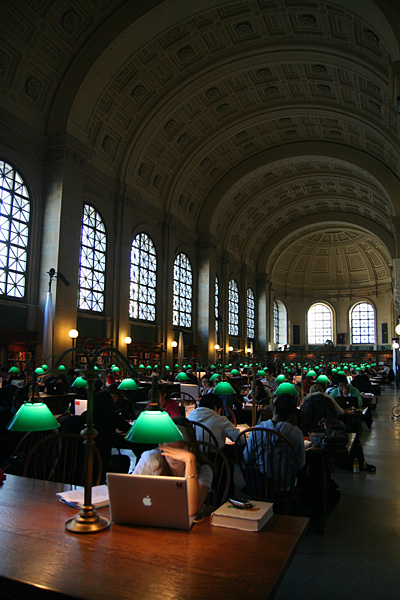 afterwards i gave my roommate a tour of the nearby boston public library. i showed him the old library before taking him to the book stacks. we spent some time browsing their extensive collection of foreign language books, from chinese to russian and all sorts of arabic-script books, like urdu and farsi, which he was able to read but didn't understand what they said. from there we cut across boston common into downtown crossing, where we visited the brattle book store on west street. the last time i was there was back in high school, so more than 15 years ago. my roommate wanted to get his hands on some cheap books, and there seems to be less and less bookstores these days, let alone used ones. his favorite subject is history and we found a used copy of "the new emperor: china in the era of mao and deng" for $1 and a beautiful oversized atlas from 1975 for $1 as well. the maps were particularly interesting for its historical value: north and south vietnam, and unified soviet union. i picked up the "loneyl planet unpacked," a collection of travel disaster stories published in 1999. i usually don't like travelogues because they seem pretentious (only because i envy anyone who travels) but once i start reading i can't put it down. we browsed around inside but most of those books were too expensive, even at 50% discount over cover price (at least compared to the dollar books outside).