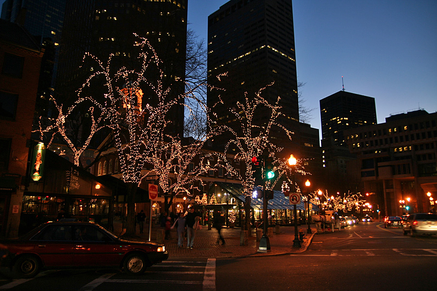 there was definitely more people running this year as a torrent of scantily-clad santas ran down the streets of boston. i could never decide to use the wide-angle or the telephoto lens, so i went with the telephoto, which was what i used last year. next year i may want to use the wide angle in order to capture more action. the fact that it's cold means the runners go by pretty quickly, so there isn't a lot of time to fumble with the camera equipment in order to get some decent shots. my roommate shot some video, i'm going to ask if i could get a copy of the footage if it's digital.