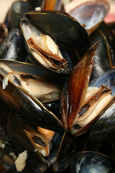 i also picked up a 2 lbs. bag of mussels ($4.59) and a carton of egg nog ($2.99 - i've decided: store bought better than homemade). i stopped by the cafe to drop off some supplies before heading to belmont. my father had the day off and was cleaning the gutters when i arrived. after he finished, he helped me lubricate my motorcycle chain and then we changed the oil, in preparation for winter storage. back in april we changed the oil twice (1st and 17th) because it was so dirty. even though i didn't ride very much this season (for obvious reason), i was surprised to see black oil draining into the drip pan. afterwards i washed the bike and sprayed some WD40 on a few rusty bolts.