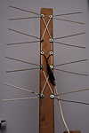 for dinner we had various sausages with rice. my father hurriedly finished so he could get back to building a homemade digital television antenna. it kind of looks like one of those racing boats one would see rowing on the charles river, except antennas instead of oars.