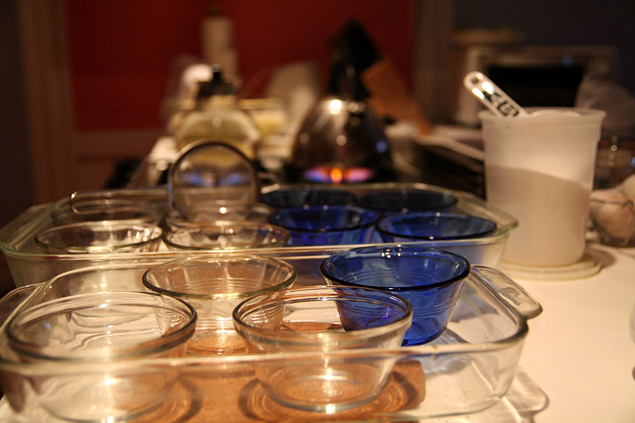 i made a dozen holiday flan today. same recipe, except this time i used just a half cup of sugar instead of a full cup. hopefully it won't taste as blindingly sweet as the ones i normally make. no cinnamon this time either, felt like it made the flan more like pumpkin pie (although you couldn't really taste it). i also didn't drink the leftover "egg nog" for fear of contracting salmonella. besides, i already have a carton of fresh store-bought egg nog waiting for me at my parents place this weekend.