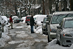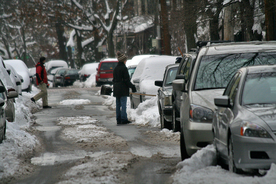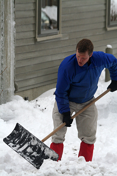 it's the monday after the weekend snowstorm and everyone is digging themselves out. it was the perfect day to do some walking around with above freezing temperatures but i only got as far as a few houses down the street to chat with bruce and jack. how could i afford to leave the 24/7 pre-inauguration coverage on all the news networks anyway? i had some scrambled eggs and kielbasa sausages for lunch; my original plan for an omelette was ruined when i discovered my container of moldy goat cheese.