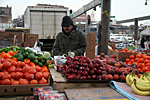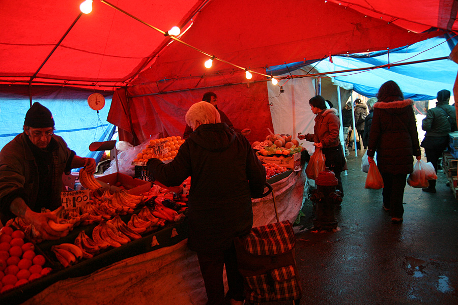 i rode the orange line one stop to state station before getting out and walking to haymarket. i first went to the halal butcher shop to buy some mutton. a woman was ahead of me in line buying something like $100+ worth of meat. the butcher was cutting everything up for her, using the saw as well as the knife. she gave me a look which i couldn't tell whether or not it was apologetic or contemptuous. i caught a piece of their arabic conversation, i think she telling the butcher how many children she has (i heard the arabic words "boy" and "girl", thank you rosetta stone training!). besides fresh cut meat, they also sell some middle eastern grocery items, as well a deli that offers fresh shawarma. a man buying a sandwich asked the glum deli worker what was wrong and he replied the situation in palestine, while arabic al-jazeera played on a wall-mounted flatscreen tv. i waited more than 15 minutes before deciding to check out the rest of the market before coming back.